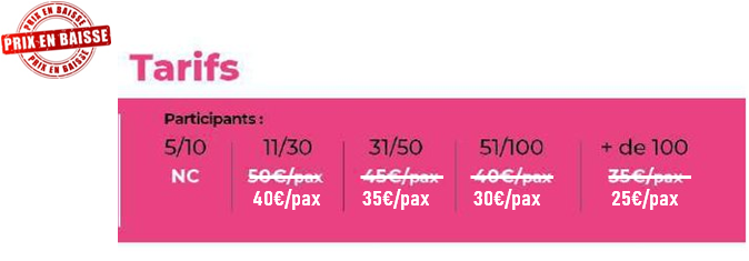 Vous deviendrez le centre de l’attention l’espace d’un instant et vous pourrez être fière d’avoir remporté des défis, ou réussi à faire rire tous vos collaborateurs. En effet, il n’existe rien de mieux qu’un fou rire communicatif pour consolider les liens ! Grâce aux nombreux challenges mis en place, les tensions disparaîtront et permettront de dérider même les plus sceptiques !